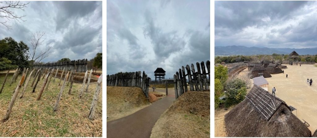 吉野ケ里遺跡には、柵や監視台のような櫓を再現されています。
