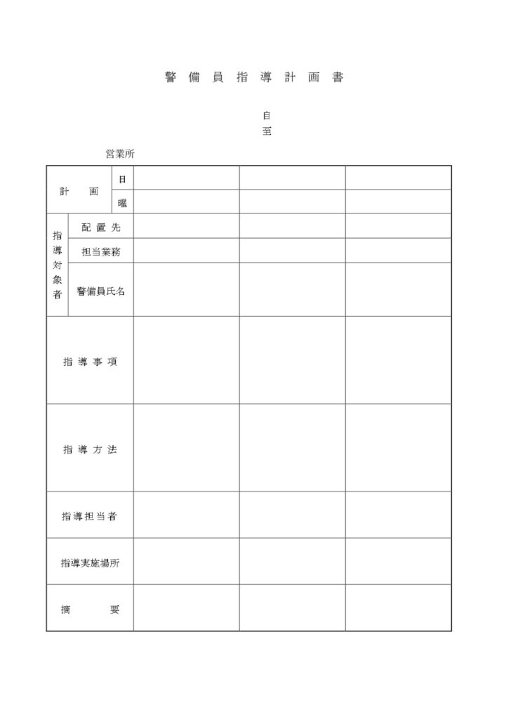 ・指導対象者……配置先や担当業務や警備員氏名を記入してください。