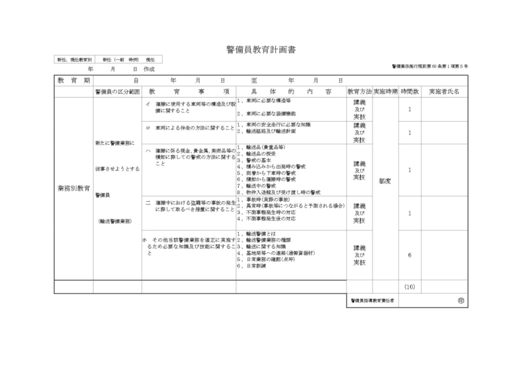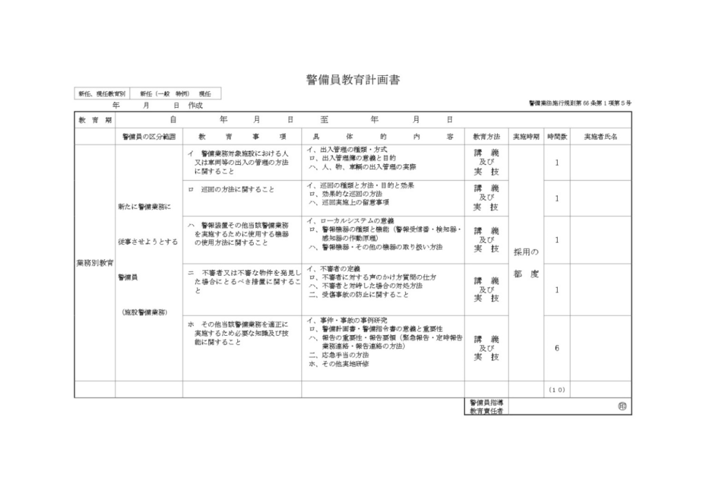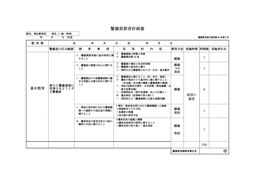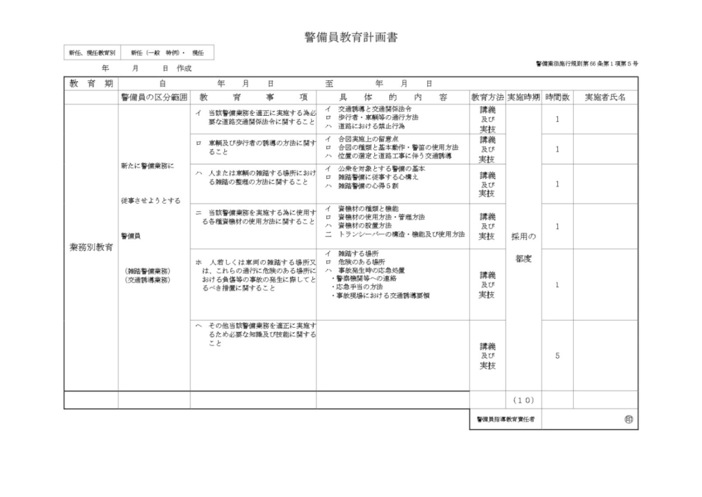 教育計画書は、法定警備員教育の計画について書いた書類のことです。