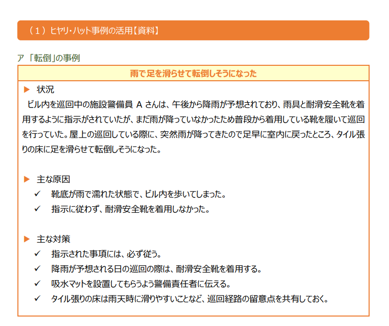 危険な目に遭いそうになってヒヤリとしたり、ハッとしたりするところから由来しており、警備業だけでなく、製造業や建設業、医療や介護の現場などでも使用されている言葉です。