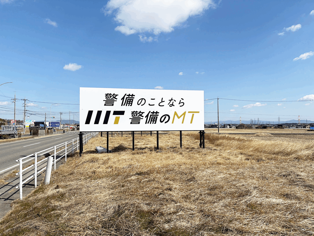 この度、「警備のMT」 は、より多くの皆さまに弊社のサービスを知っていただくため、県道57号線沿い(本郷口交差点から豊明市役所方面に向かう道沿い) に野立て看板を設置いたしました。 白を基調としたシンプルで視認性の高いデザインに仕上げており、ド... -
