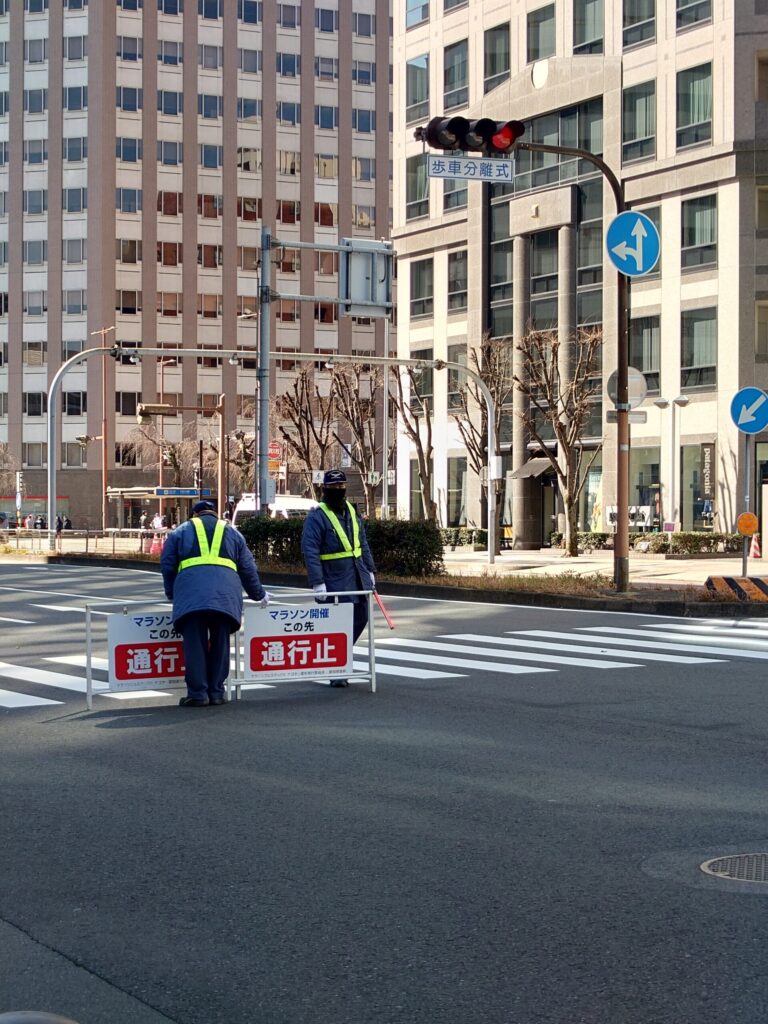 当社は、安全・安心な大会運営を支えるべく、コース周辺の警備・交通整理などの業務を遂行し、大会が円滑に進行するよう全力を尽くしました。