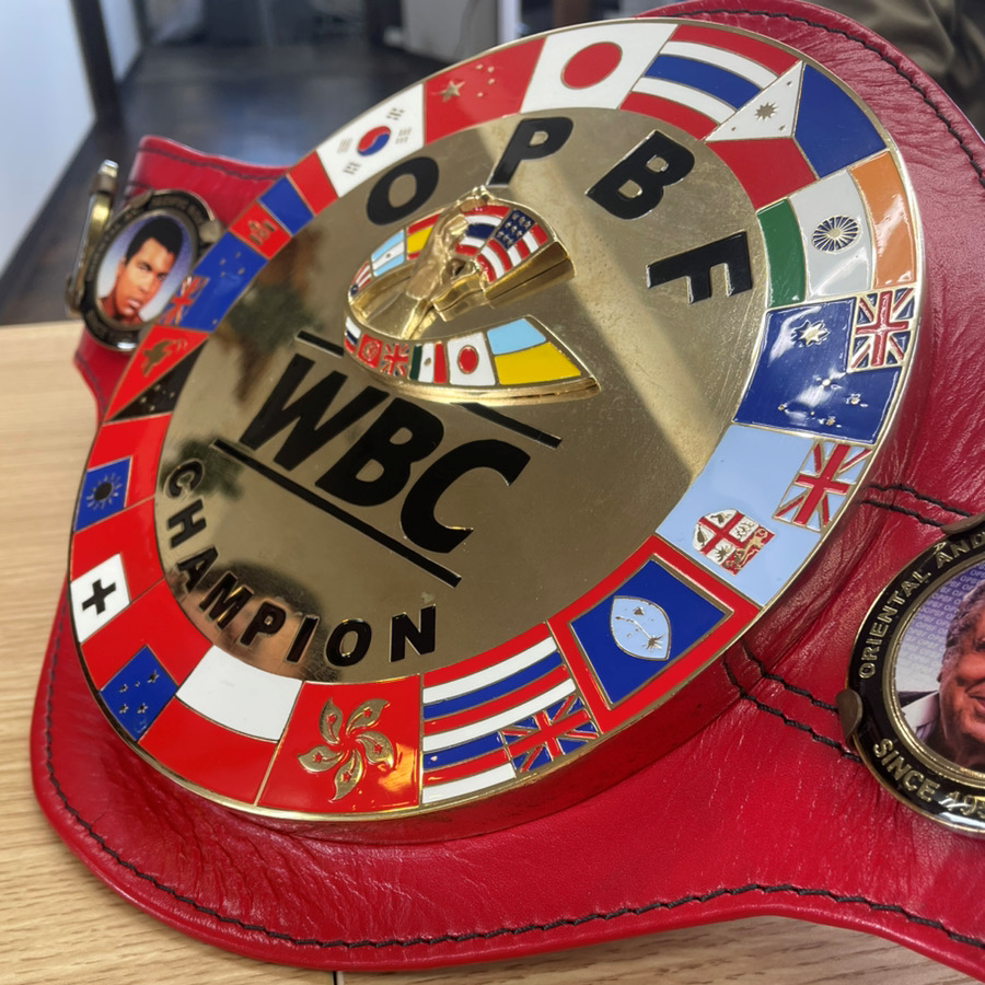 今年1月に獲得した「WBOアジアパシフィックのチャンピオンベルト」をお持ちいただきました!