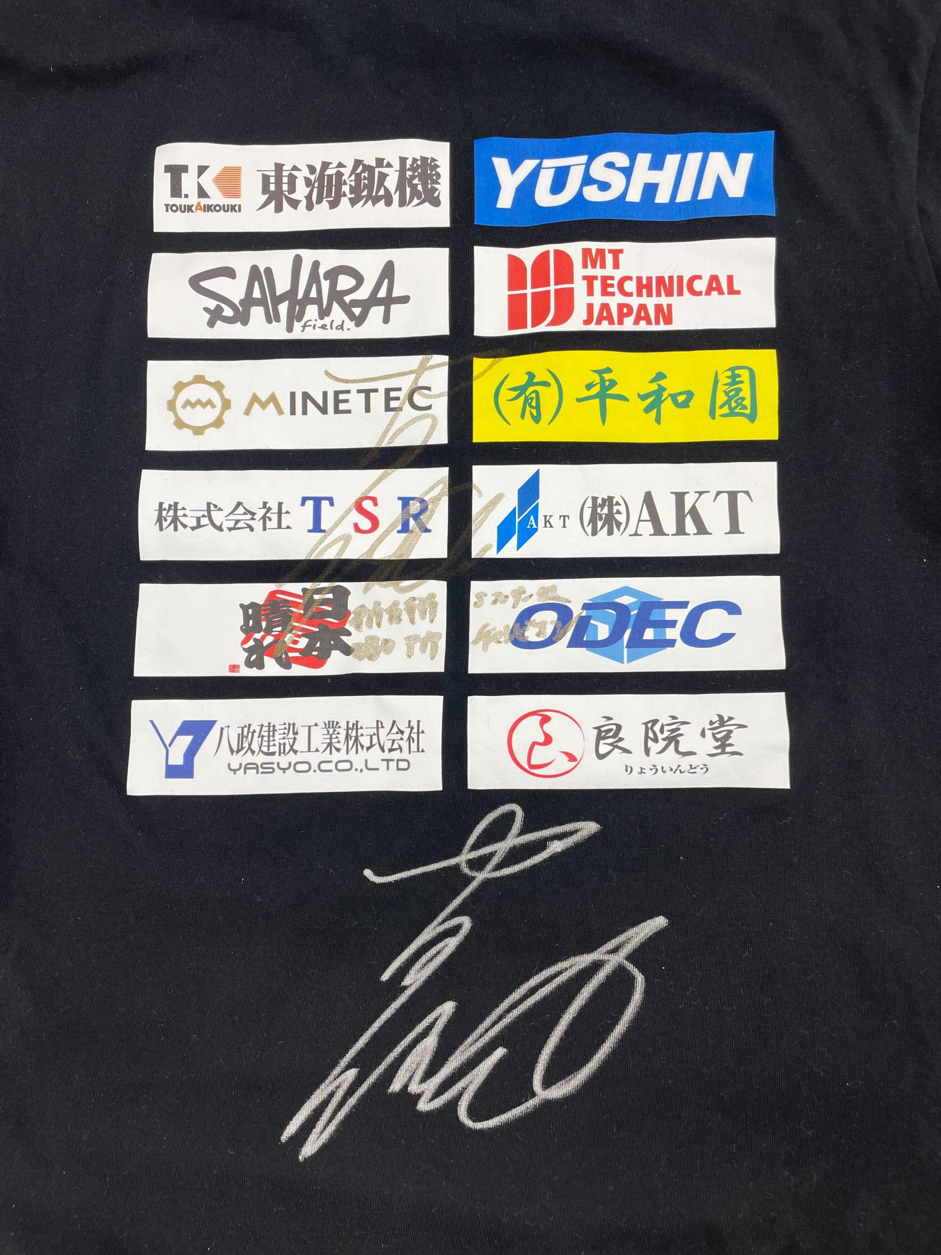 (↑力石選手を応援している方々のロゴがプリントされたTシャツにサインしていただきました!)